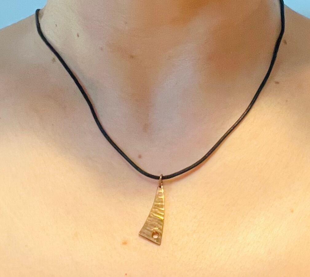Kolmio 真鍮 ペンダントは、洗練されたデザインが魅力のアクセサリーです。Kolmioはフィンランド語で「三角」を意味し、シンプルながらも独特な形状が個性を引き立てます。