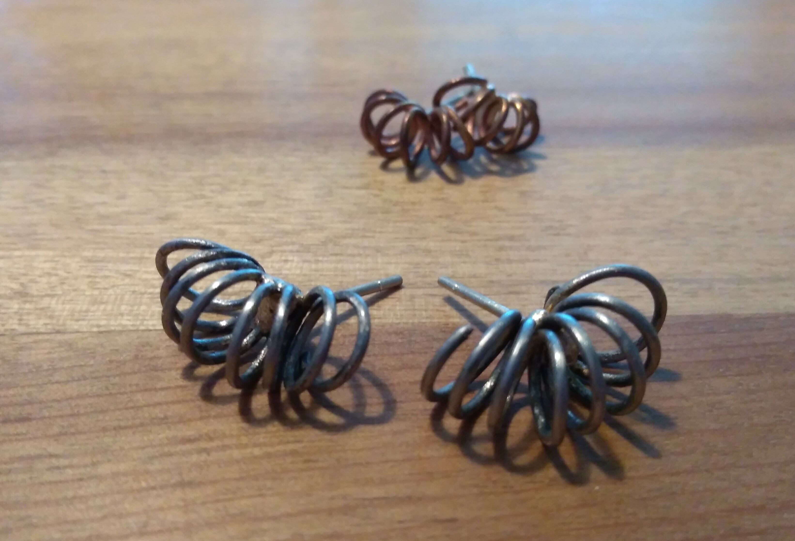 ブロンズの針金をまいて開いてお花のようなピアスです。