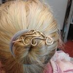 ブロンズから作ったヘアピンです。マット仕上げです。結んだ髪の毛につけてください。