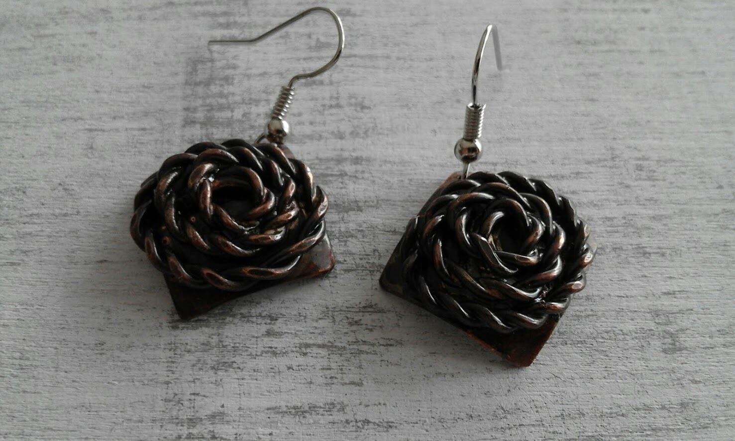 copper銅のバラのようなピアスです。ruusuはフィンランド語でバラという意味です。